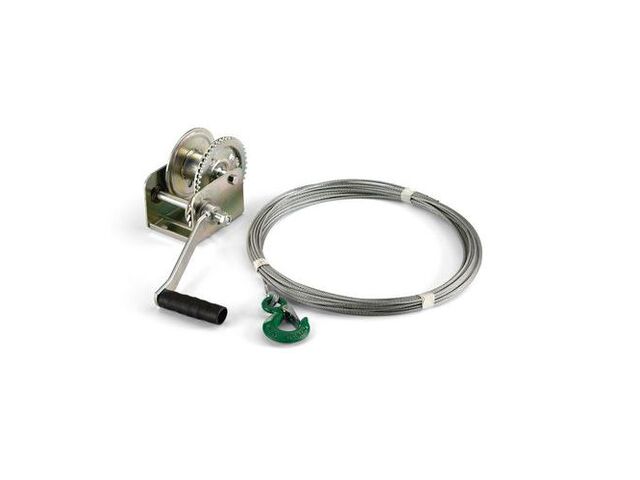 Treuil manuel de levage et de traction, câble inclus: non, avec frein: oui, force: 1450 kg, usage: halage et levage, câble longueur maxi: 5 m, poids du produit: 44 kg, câble ø: 10 mm, effort à la manivelle: 12 kg, ce: oui