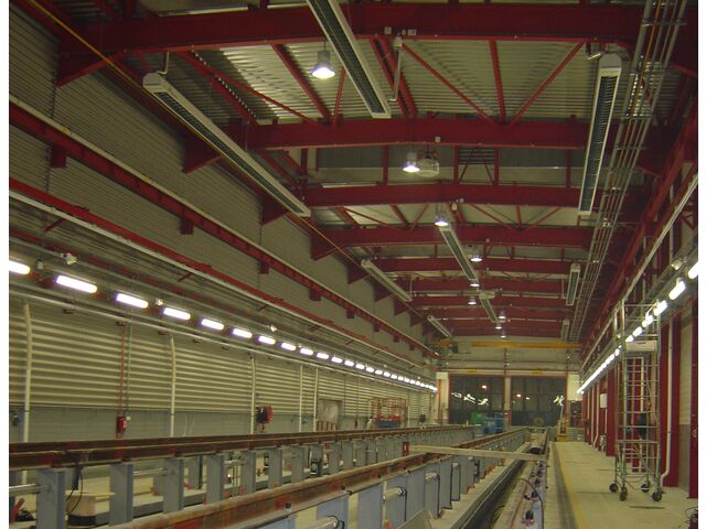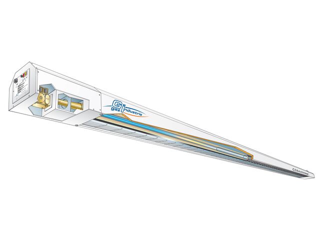 Tube radiant gaz linéaire pour bâtiments industriels de moyenne et grande hauteur, avec ou sans isolation.
