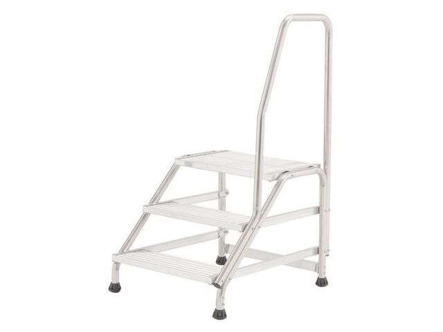 Ce marchepied se distingue par ses 3 marches antidérapantes, offrant une profondeur de 200 mm chacune, assurant une adhérence parfaite même dans des conditions d'utilisation exigeantes. La plateforme de travail de 560 mm de longueur sur 400 mm de largeur, située à une hauteur de 0.6 mètre, procure un espace suffisant pour travailler confortablement et en toute sécurité. La rampe unique renforce le sentiment de sécurité, particulièrement lors des montées et descentes, minimisant ainsi les risques de chute.