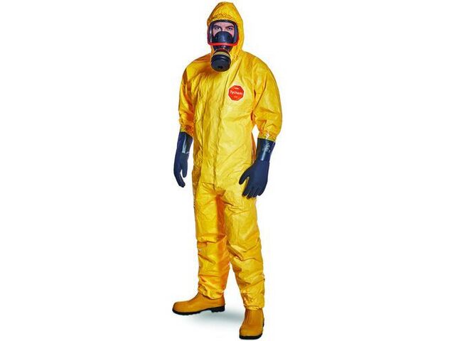 Avant de porter la combinaison, assurez-vous qu'elle est en parfait état, sans déchirure ni perforation. Enfilez la combinaison en commençant par les pieds, puis par les bras. Fermez complètement la fermeture à glissière. Ajustez la capuche pour qu'elle recouvre votre tête et soit bien plaquée contre le masque si vous en portez un. Assurez-vous que les poignets et les chevilles sont bien ajustés, idéalement recouverts par des gants et des bottes si nécessaire. Après utilisation, retirez la combinaison avec précaution pour éviter toute contamination. Jetez la combinaison dans un conteneur approprié, conformément aux réglementations locales.