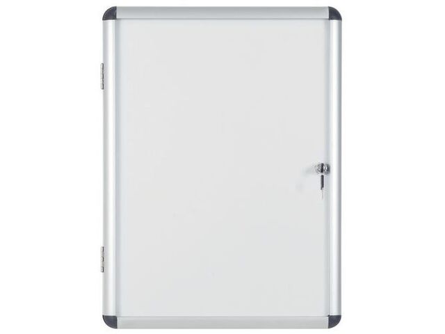 Dimensions : Hauteur 98 cm, Largeur 112.3 cm, Profondeur utile 2.7 cm, Profondeur totale 6.5 cm. Capacité : 15 feuilles A4. Matière du fond : Acier magnétique. Matière du cadre : Aluminium. Matériau des portes : Verre Securit. Couleur : Gris. Utilisation : Intérieur. Type d'ouverture : Portes coulissantes. Caractéristiques supplémentaires : Convient au Lean Management, emballage écologique. Garantie : 3 ans.
