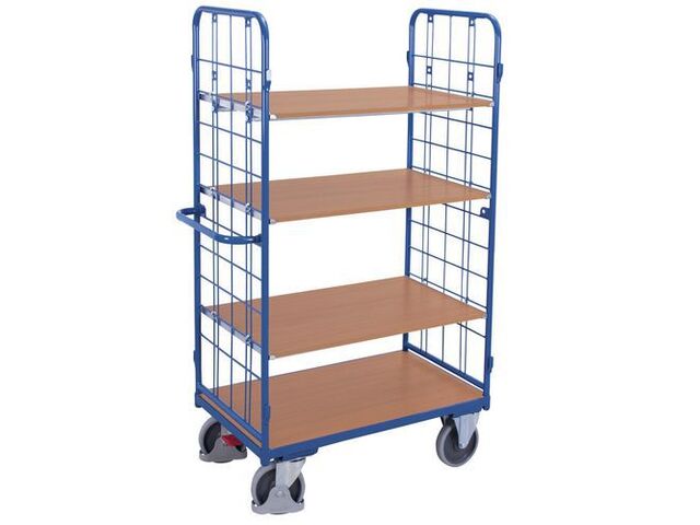 Découvrez le chariot haut Variofit A230063, une solution de manutention robuste et ergonomique conçue pour optimiser le transport et le stockage dans divers environnements professionnels. Ce chariot de haute qualité, doté de quatre plateaux en MDF de dimensions utiles 1200x800 mm, supporte une charge maximale impressionnante de 500 kg au total, avec une capacité de 80 kg par plateau. Sa structure en acier, peinte en bleu RAL 5010, assure une durabilité et une résistance exceptionnelles aux contraintes quotidiennes.