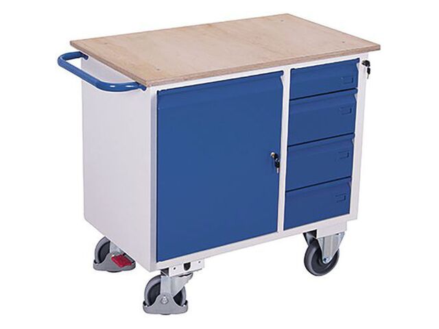 L'organisation est au cœur de la conception de cet établi mobile. Il est équipé de 4 tiroirs spacieux, chacun supportant jusqu'à 25 kg, parfaits pour ranger vos outils, accessoires et consommables en toute sécurité. La largeur utile de chaque tiroir est de 290 mm, assurant un accès facile à vos affaires. De plus, une porte unique s'ouvre sur un espace de rangement supplémentaire, idéal pour stocker des articles plus volumineux, et est sécurisée par une fermeture à clé pour une tranquillité d'esprit totale. Trois tablettes pratiques complètent l'agencement, chacune pouvant supporter jusqu'à 30 kg, offrant des options de stockage supplémentaires pour vos matériaux ou outils fréquemment utilisés.