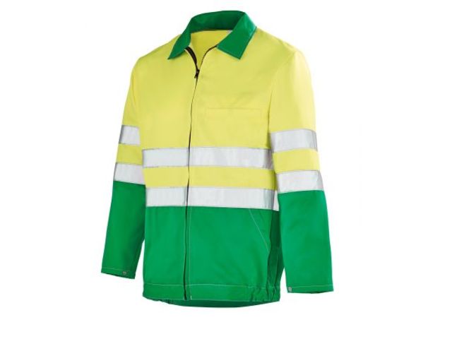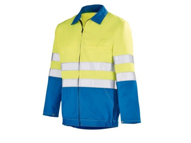 Matière: Polyester 70% et coton 30%Bandes rétro-réfléchissantes autour du corps et des brasCol transformableFermeture à glissière bord à bordManches montéesPoignets fermés par grippersPoches basses fermées par grippersPoche poitrine gauche passepoilée fermée par grippers cachés
