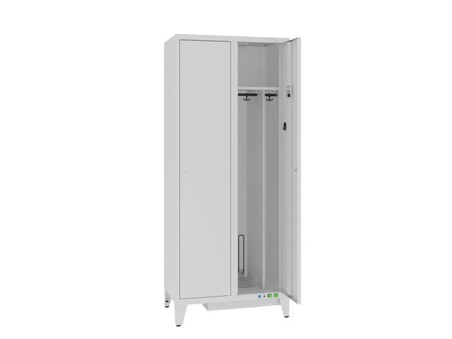 “ Vestiaire multi-compartiments spécifique pour la police. Permet le rangement d'une matraque, arme de poing, veste, bottes etc.... Trous d'aération ronds haut et bas. Fermeture trois points à serrure (2 clefs fournies). Disponible en version 1 ou 2 [...] ”