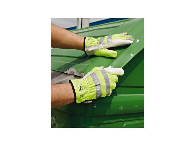 Marque : MARTIN FRERESType : Gants de protection thermiqueBandes réfléchissantes : 3M™ Scotchlite™Normes : CE Cat II EN 388 (3.1.3.1)Coloris : beige/jauneMatière : Cuir fleur de bovin sur paumeTailles disponibles : 8, 9, 10Utilisation : Protection contre le chaud et le froid
