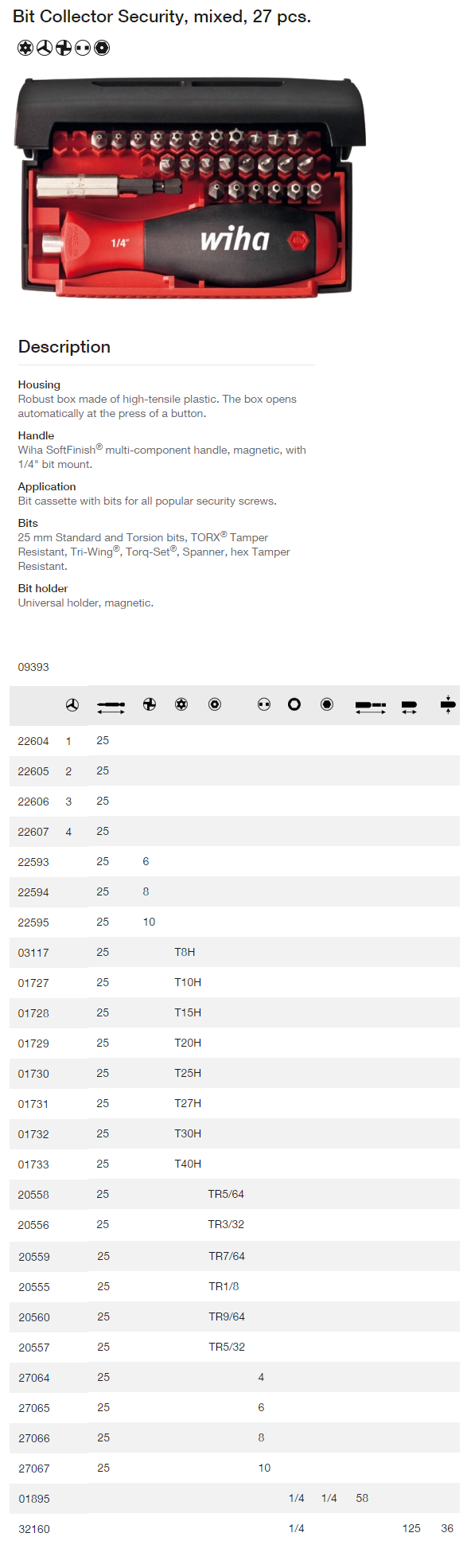 Wiha : WIHA- Embouts - Embouts Standards - Collecteur d'Embouts Standard Security, mélangés, 27 pièces